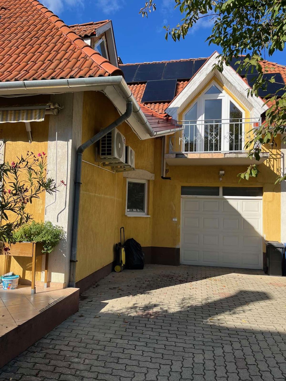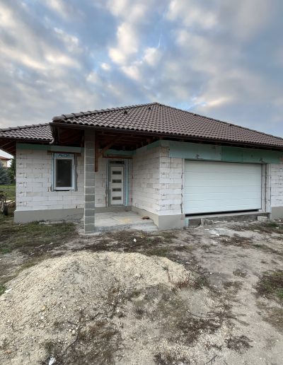 Prémium minőségű, sima felületű szelesbordás szekcionált garázskaput építettünk be, hőszigetelt kivitelben és motoros működtetéssel.