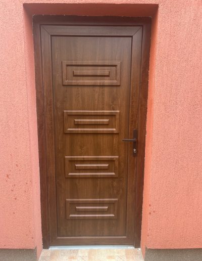 Hőszigetelt dió színű ajtó – Kiváló energiahatékonyságot biztosít, miközben elegáns megjelenést ad a bejáratnak.