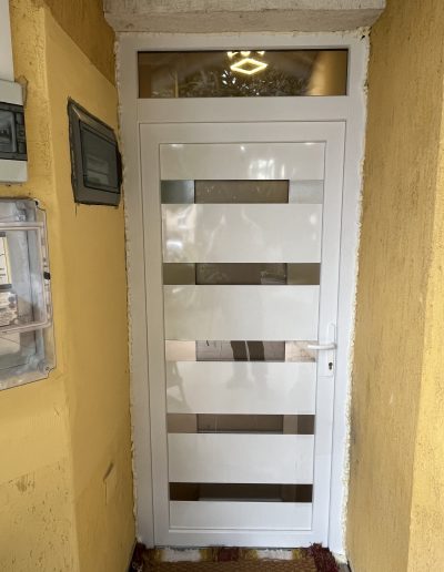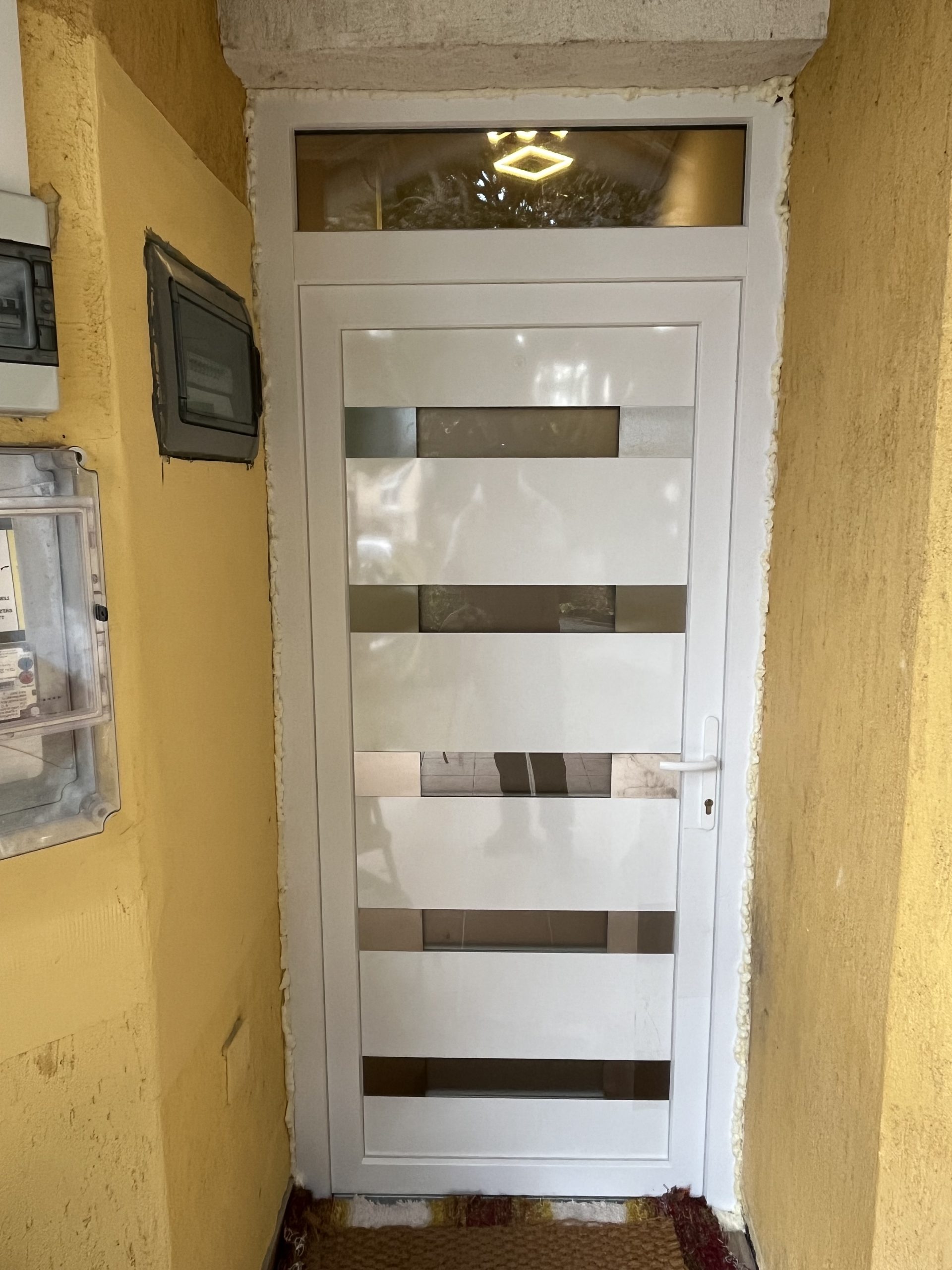 Műanyag bejárati ajtó fix felülvilágítóval Ez a modern, hőszigetelt műanyag bejárati ajtó fix felülvilágítóval tökéletes választás, ha tartós és esztétikus megoldást keres otthonába. A felülvilágító természetes fényt enged be, növelve a tér világosságát, miközben az ajtó kiváló hő- és hangszigetelő tulajdonságokkal rendelkezik. Ideális családi házakhoz, új építésű és felújított ingatlanokhoz egyaránt.